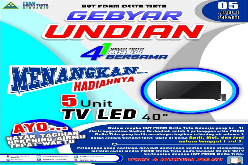 GEBYAR UNDIAN HUT PDAM DELTA TIRTA SIDOARJO KE - 41 MENANGKAN 5 UNIT LED TV 40" Bagi pelanggan setia PDAM Delta Tirta Sidoarjo yang tertib...